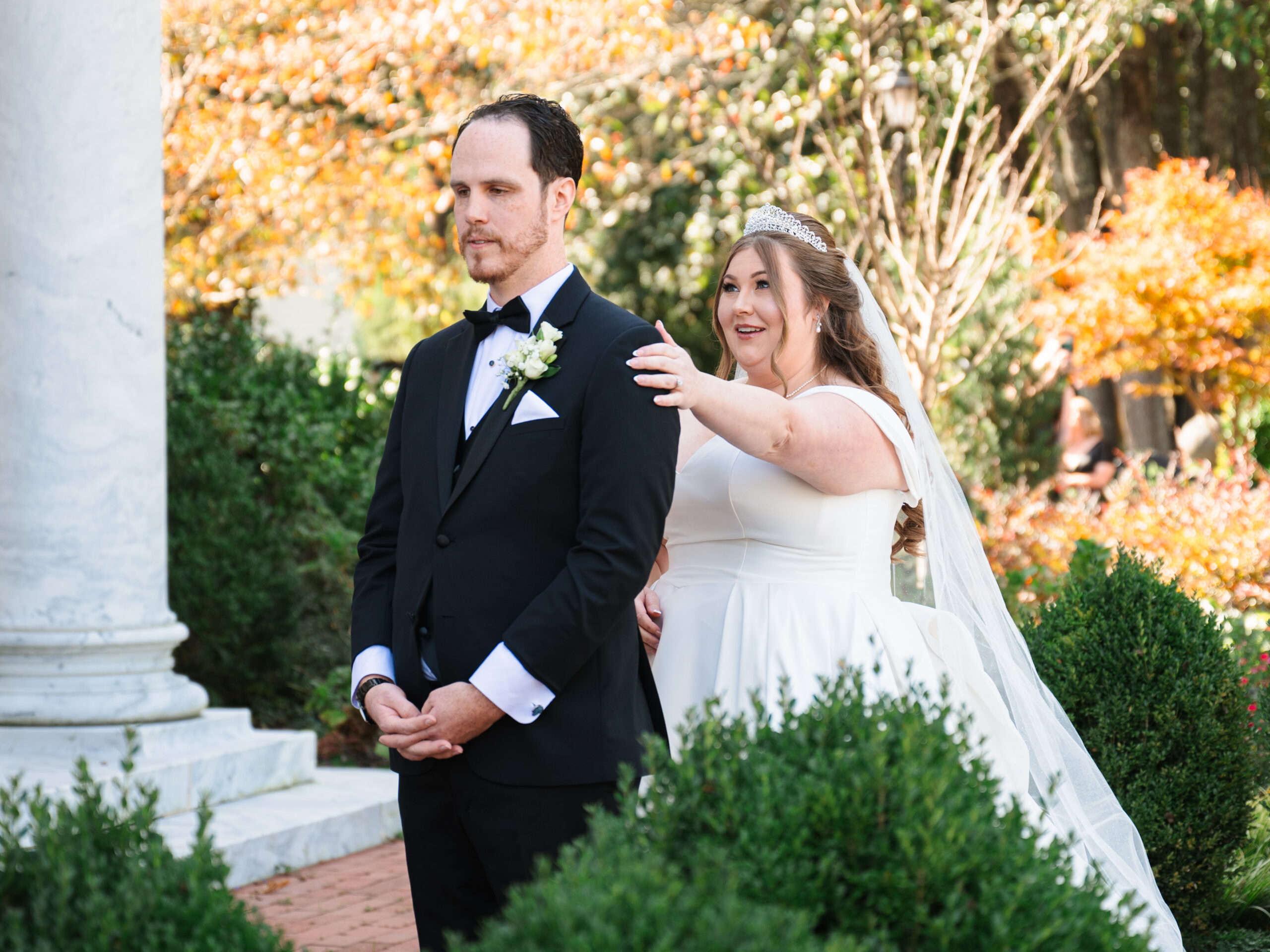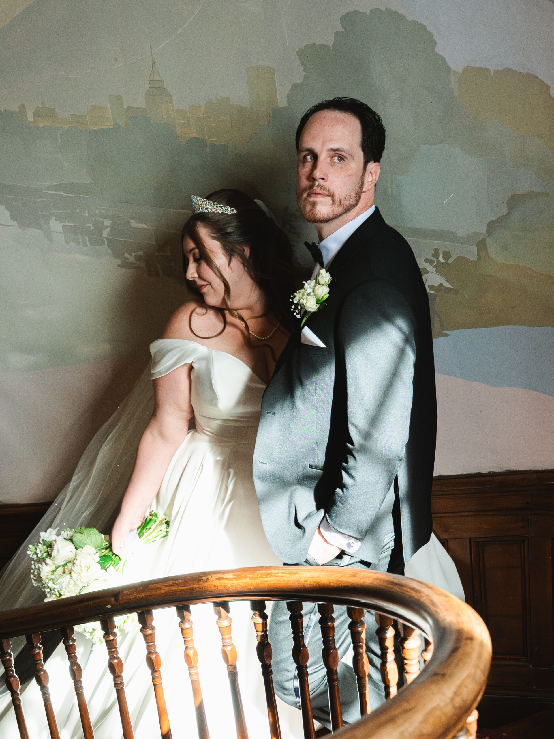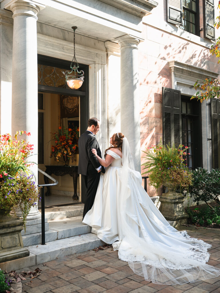 October at the Tate House is something special. Clear skies and that particular quality of fall light that makes everything feel a little more golden. We had beautiful windows of time outside with just the two of them, and Kayla was stunning — outside against the backdrop of the vast grounds and inside on the sweeping staircase.