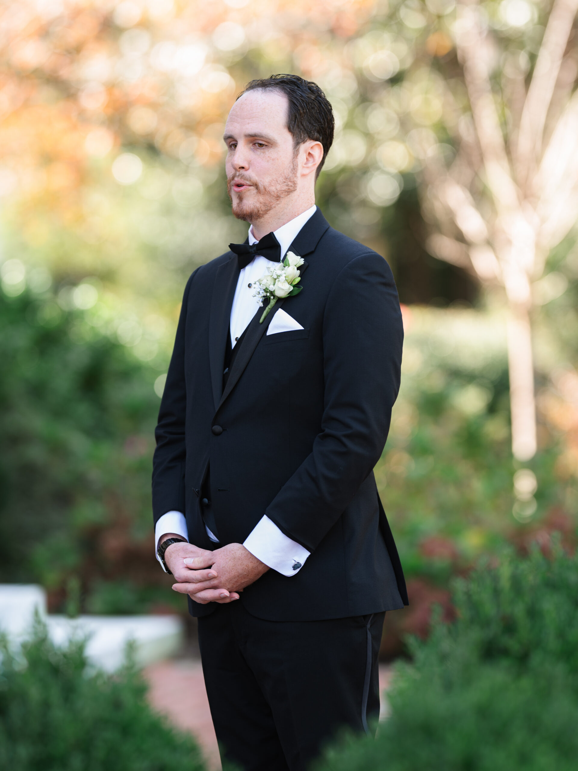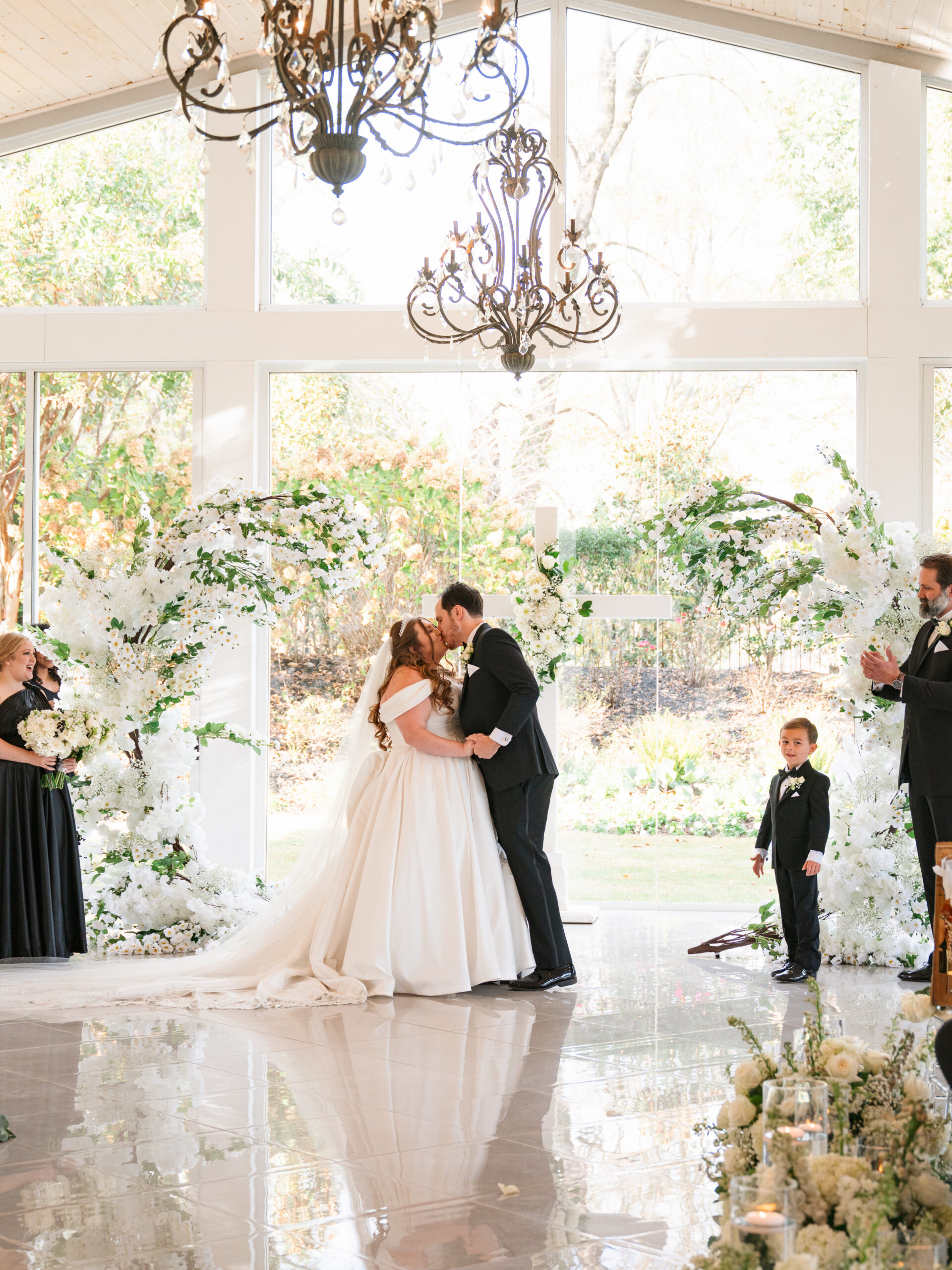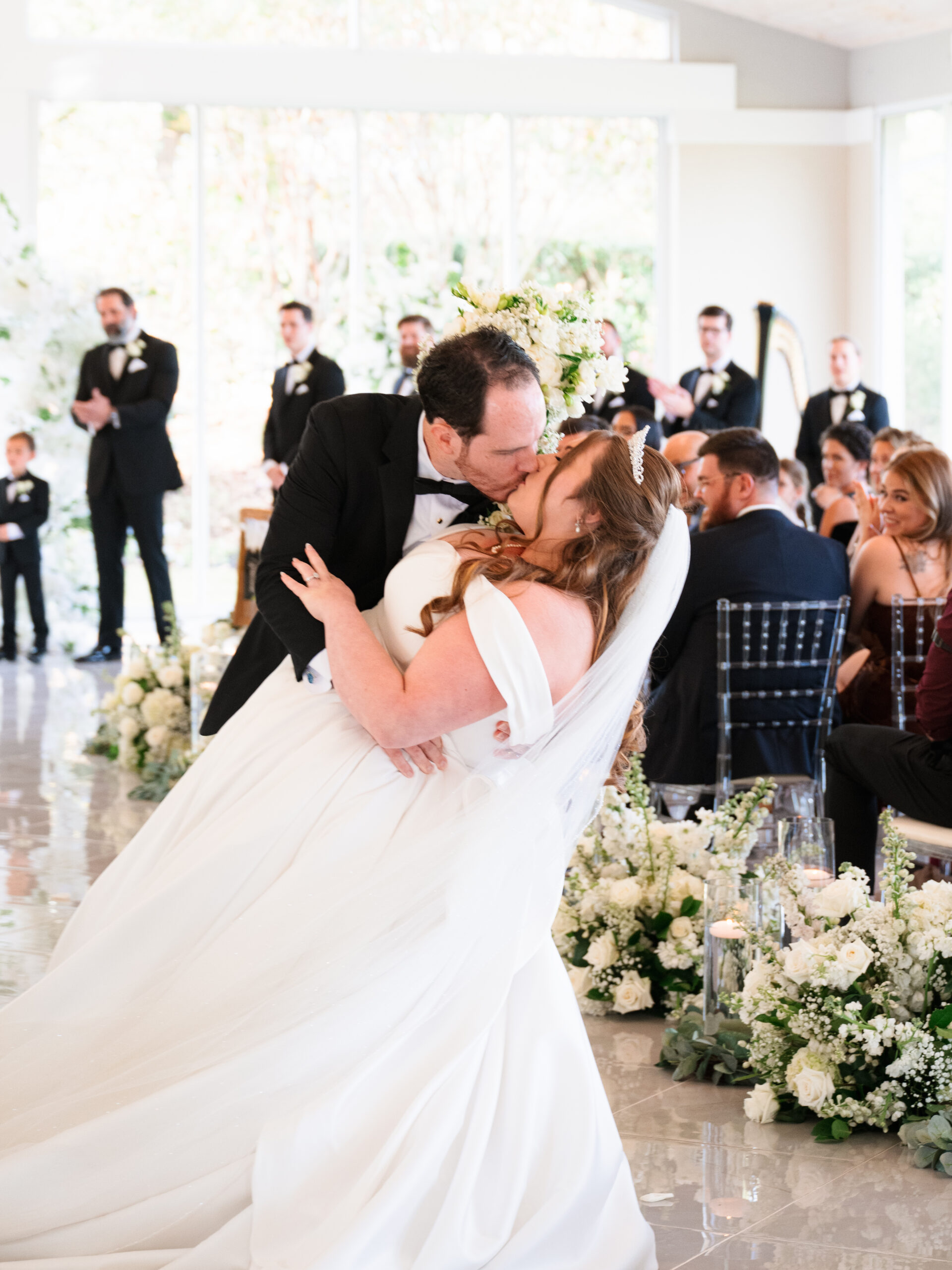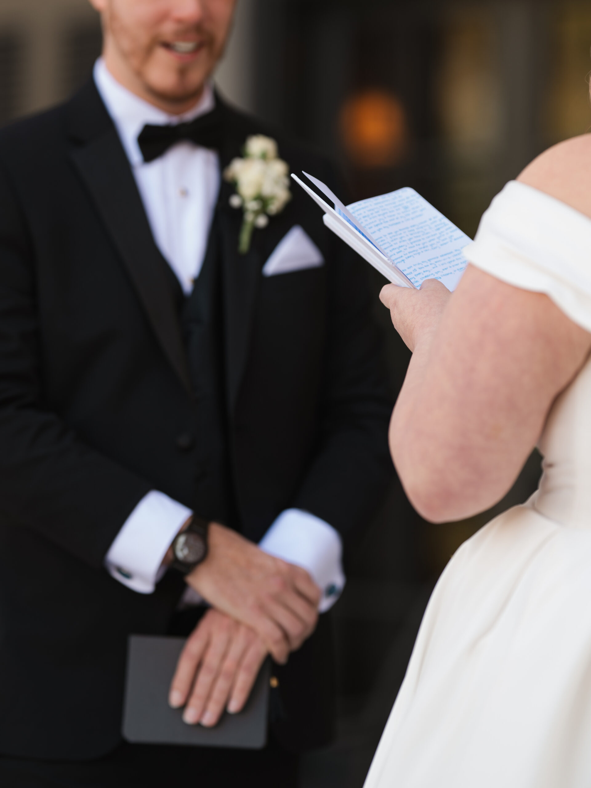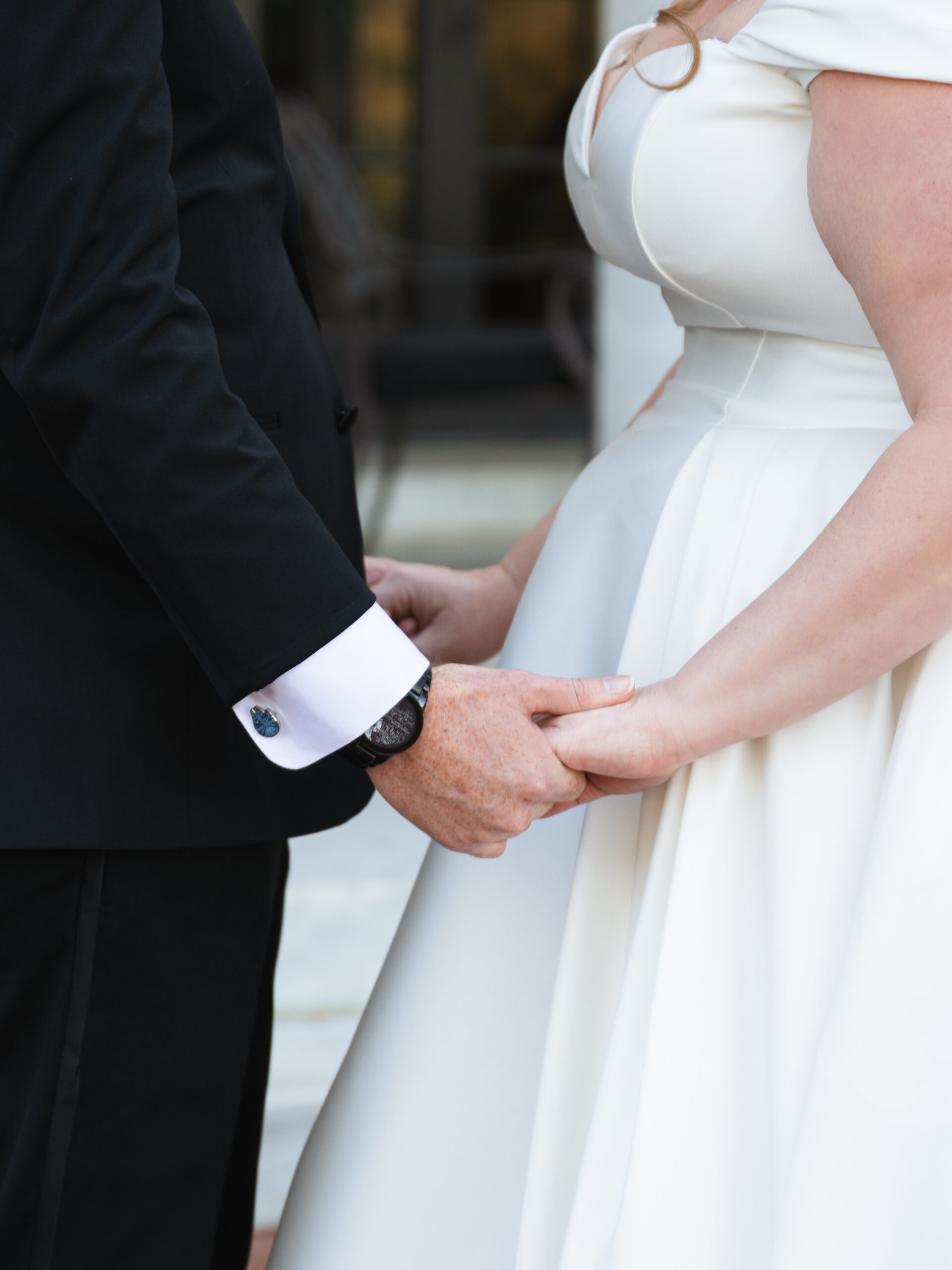 The details told you everything you needed to know about these two. George had Star Wars cufflinks and a watch that made it clear he wasn’t pretending to be anyone other than himself. Kayla’s vision was classic — white florals, elegant black bridesmaid dresses, her own gorgeous voluminous dress (with a fabulous bow) that made everything come together perfectly.