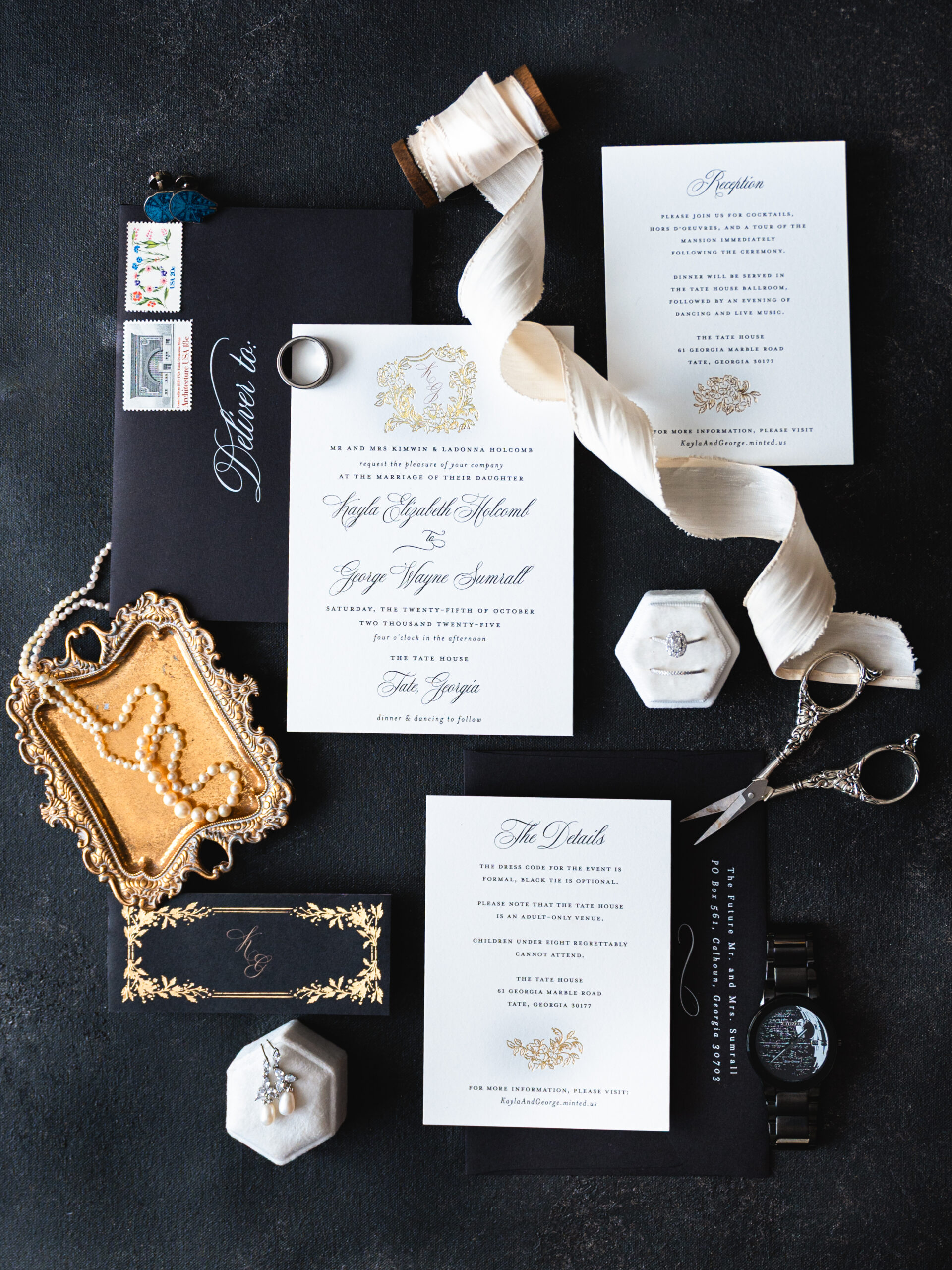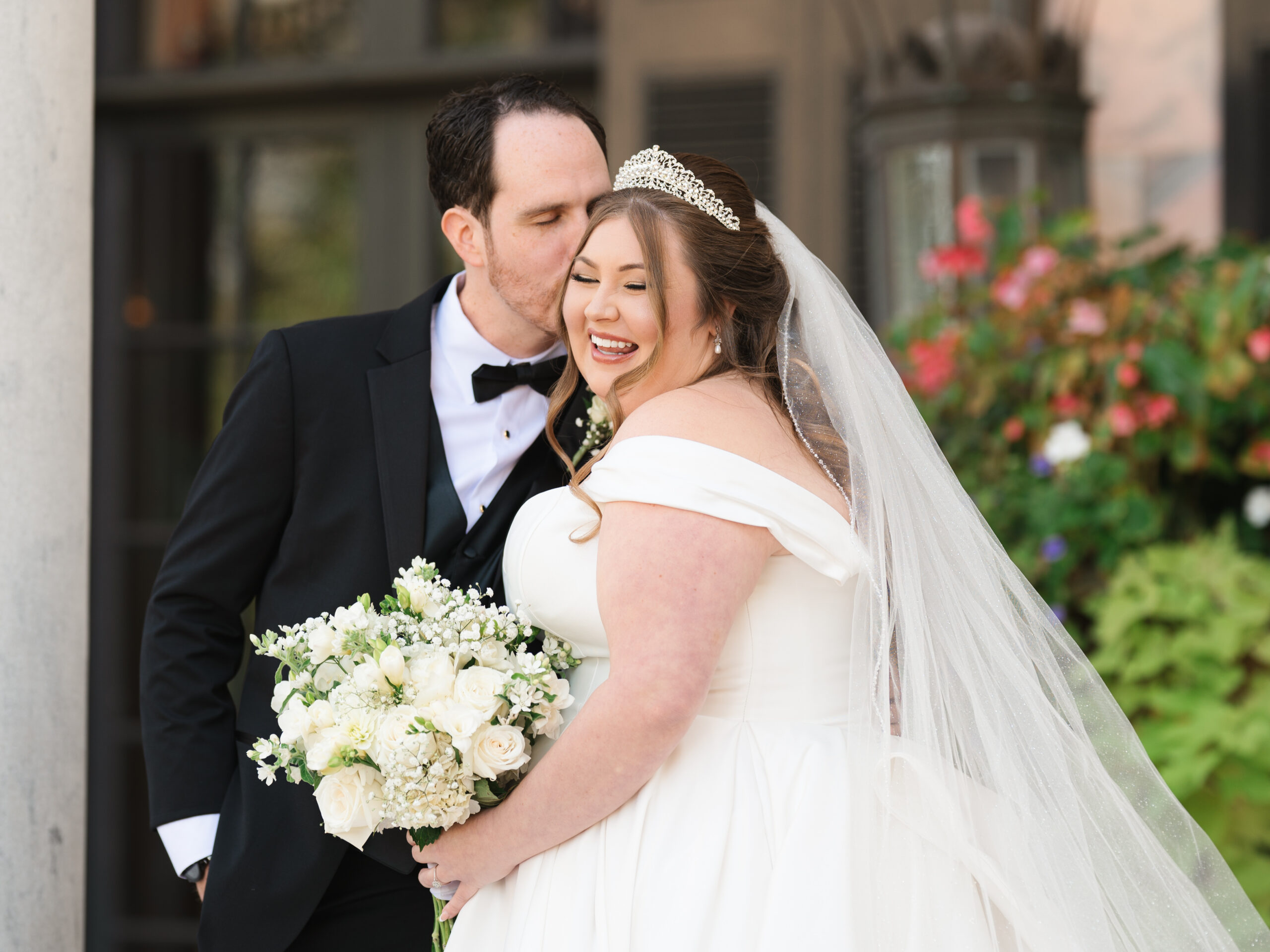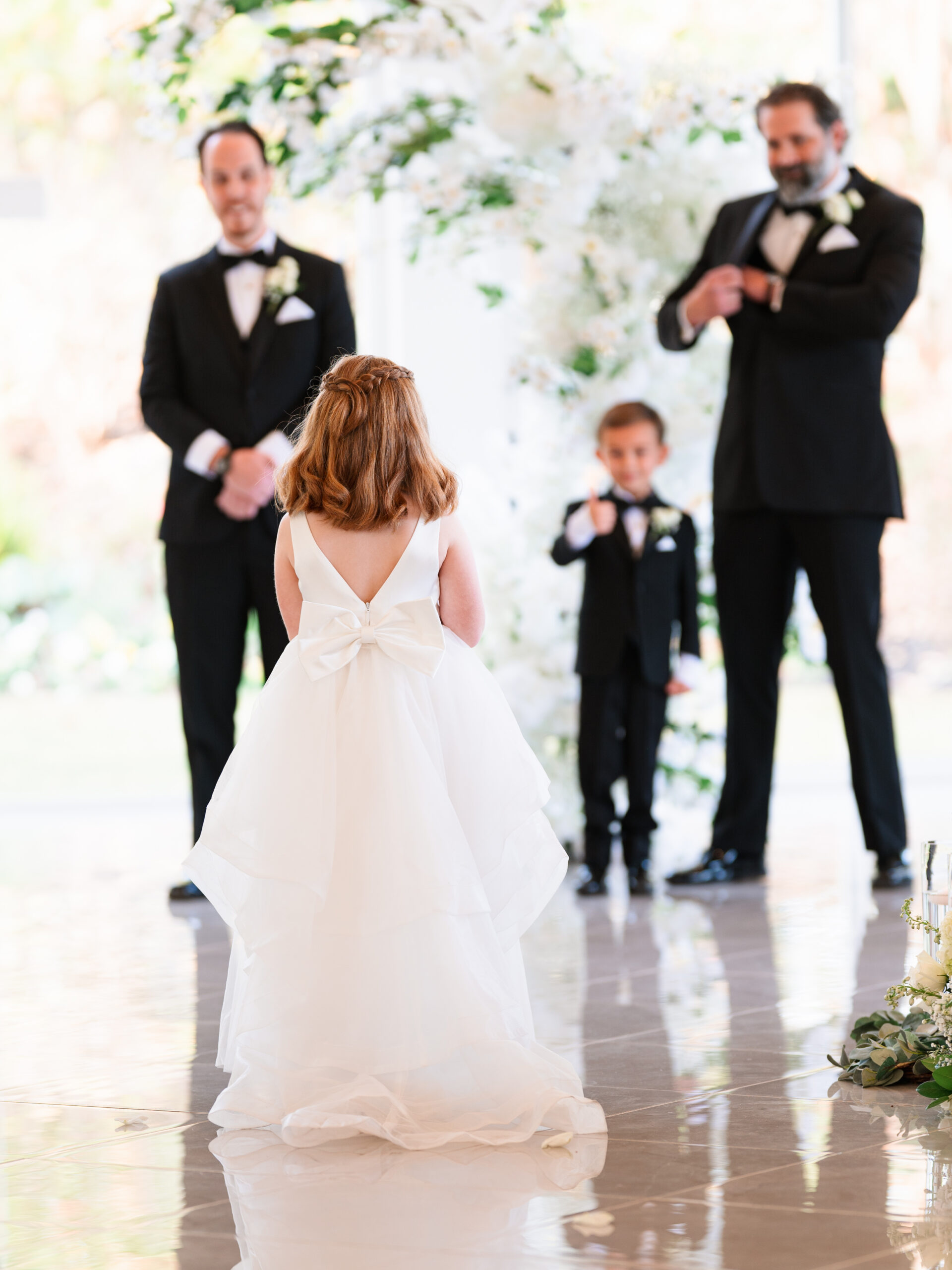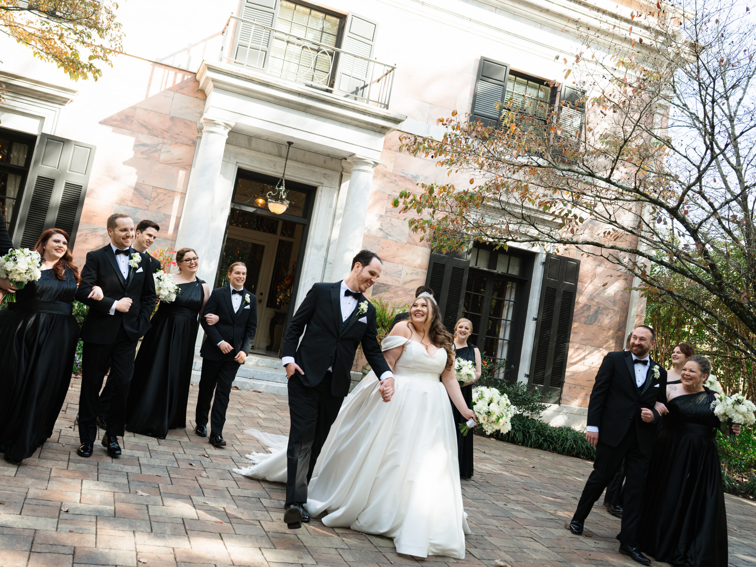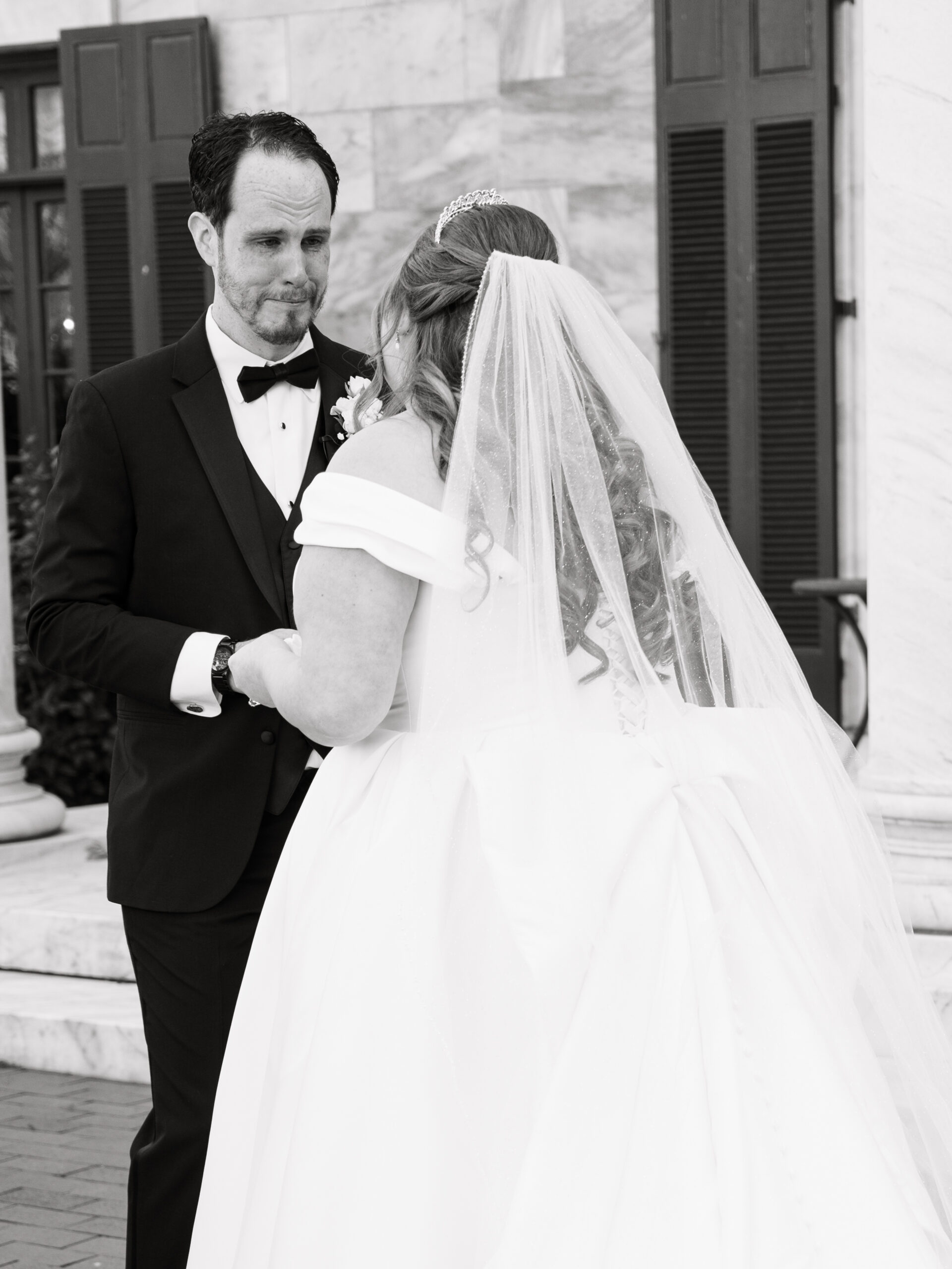 The details told you everything you needed to know about these two. George had Star Wars cufflinks and a watch that made it clear he wasn’t pretending to be anyone other than himself. Kayla’s vision was classic — white florals, elegant black bridesmaid dresses, her own gorgeous voluminous dress (with a fabulous bow) that made everything come together perfectly.